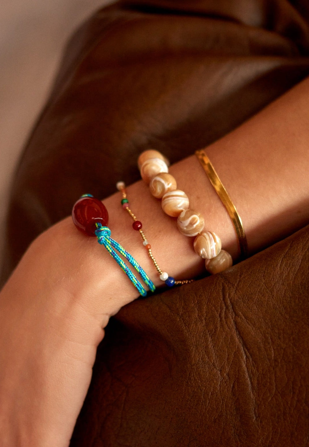 Create your own arm-candy with the fun & playful Anni Lu bracelets. You can mix and match colorful beads, pearls & beachy shells to create your own unique look.