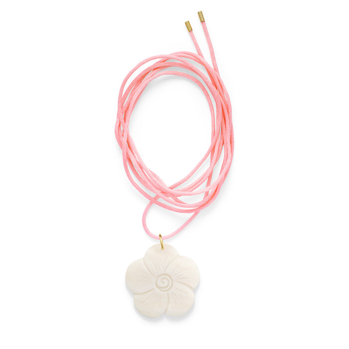 The Flower on a String is a delicate piece with bohemian vibes. It features two strings, one in Burnt Orange and one in Sweet Pink, adding a playful, free-spirited touch. This necklace embodies a boho-chic feel, making it perfect for summer.