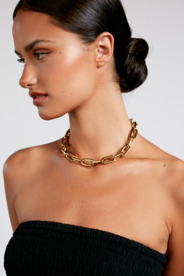 GOLDEN LINK is bold in a quiet way — confident, considered and designed to be worn on repeat.- Crafted in brass with 18-karat gold plating and anti-tarnish e-coating