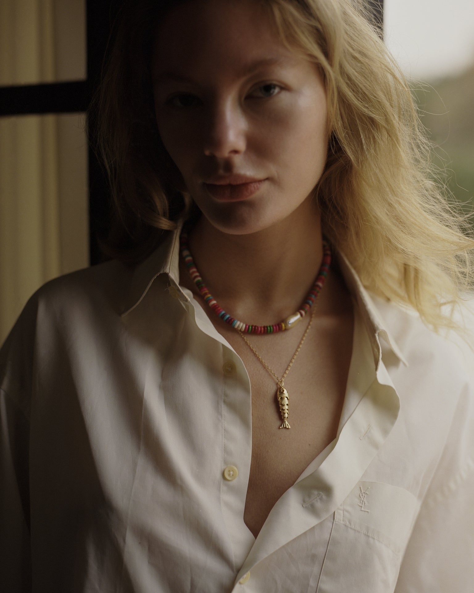 Embrace the playfullness of the Sardine Necklace, a vibrant piece that captures the essence of classic ANNI LU style. This multicolor necklace features the season's must-have motif: the fish. Fish symbolize happiness and freedom, reminding us to enjoy life’s simple pleasures and swim through challenges with ease.