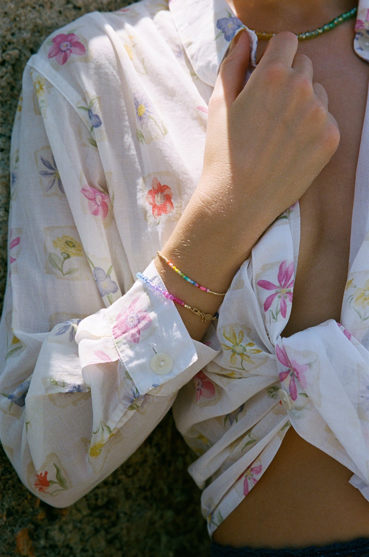 The bracelet is inspired by the dazzling seaside shimmer, where the sun's rays reflect the sea and reveal a rainbow.