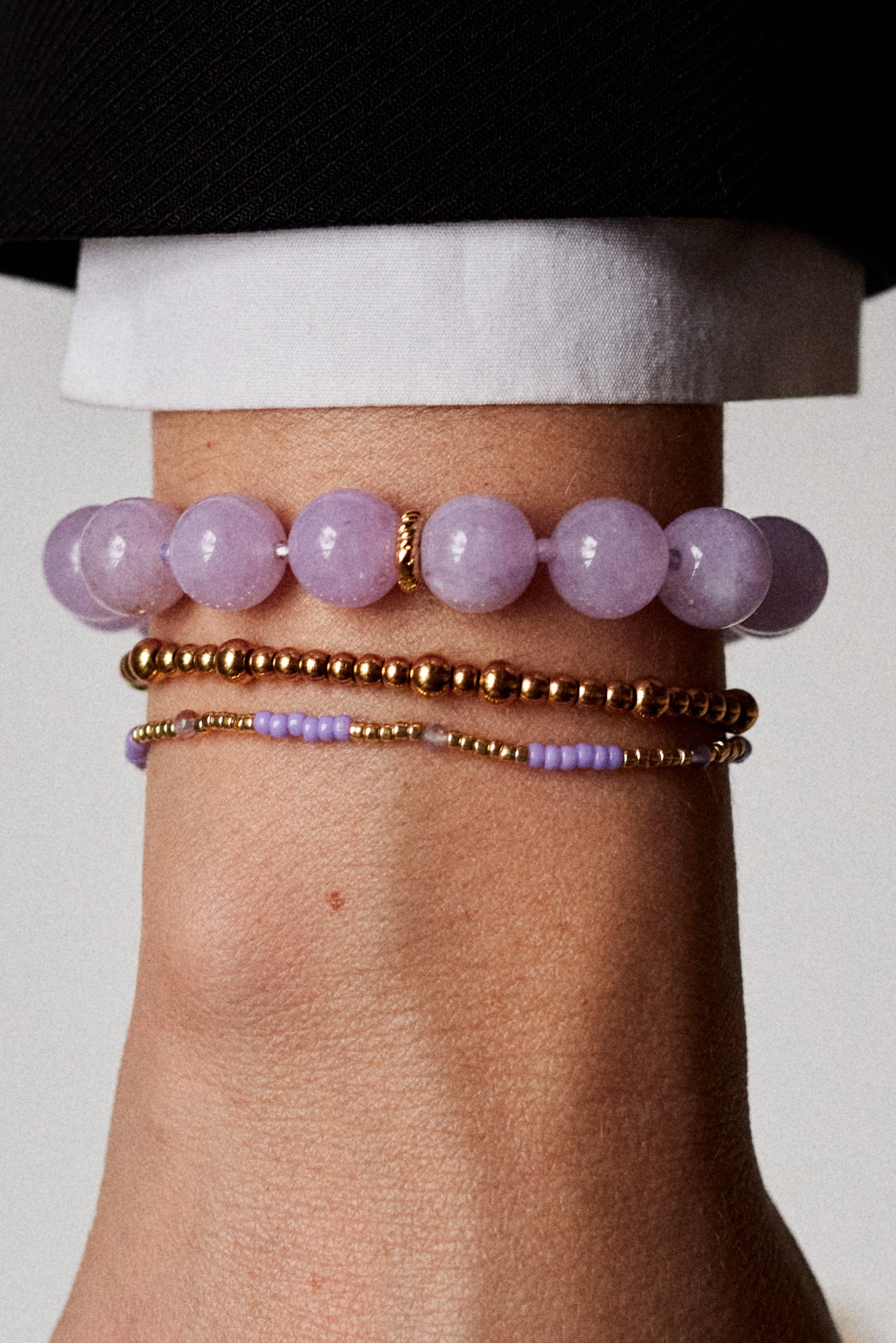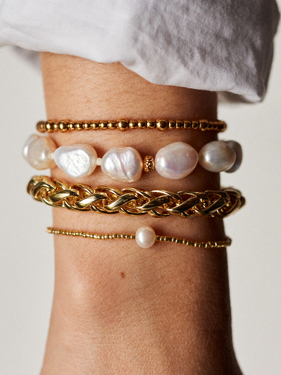 The Slim Goldie styles embrace both elegance and playfullness at the same time. This bracelet features gold beads that mimic the look of pearls, which gives it a natural unique look.
