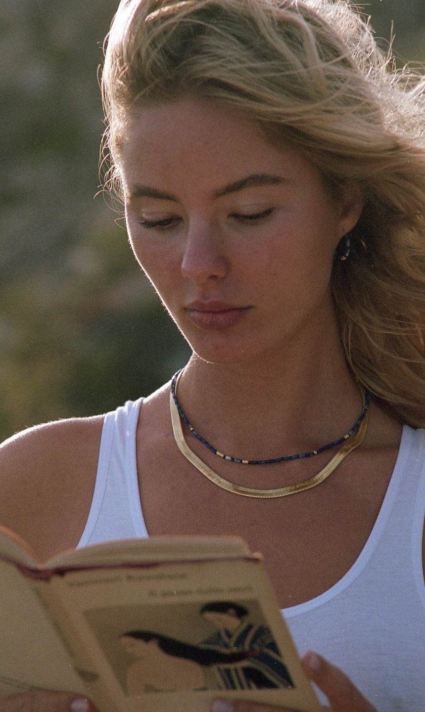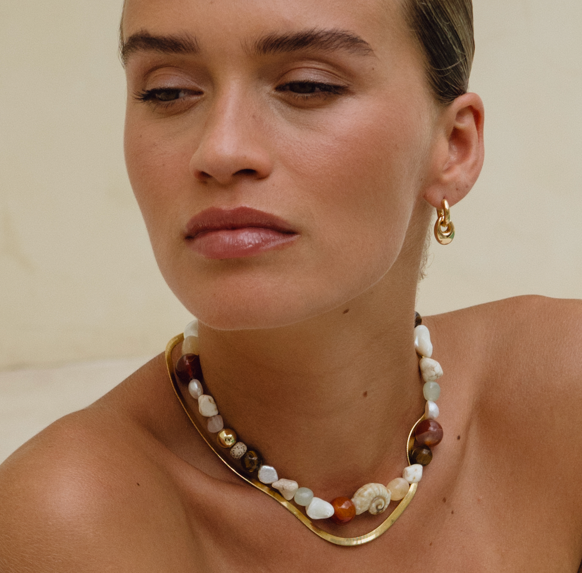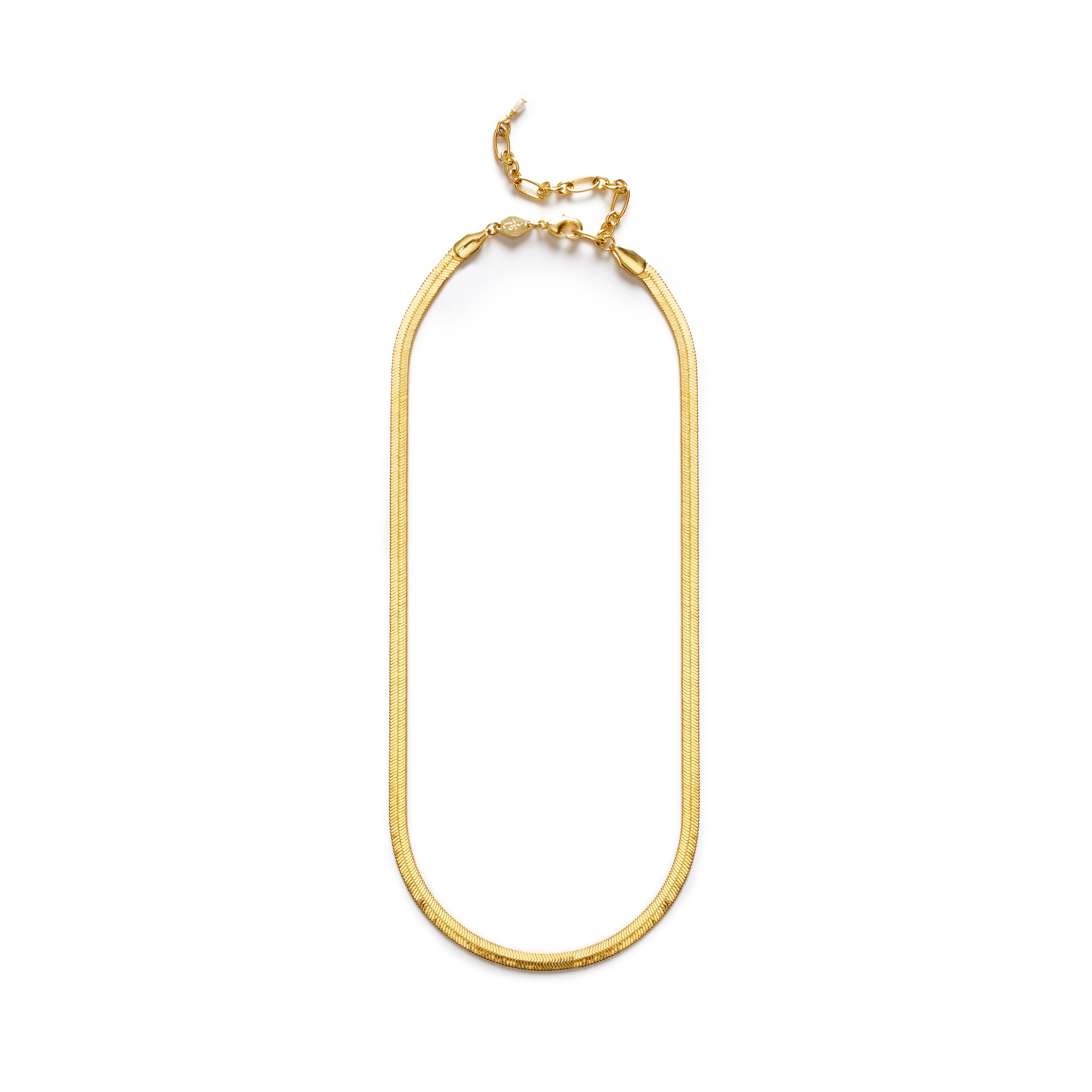 SNAKE CHARMER moves with you — a classic gold chain with an organic shape that fits like it was made just for you. Wear it solo or stack it up. No rules, just charm.- Crafted in brass with 18-karat gold plating and anti-tarnish e-coating