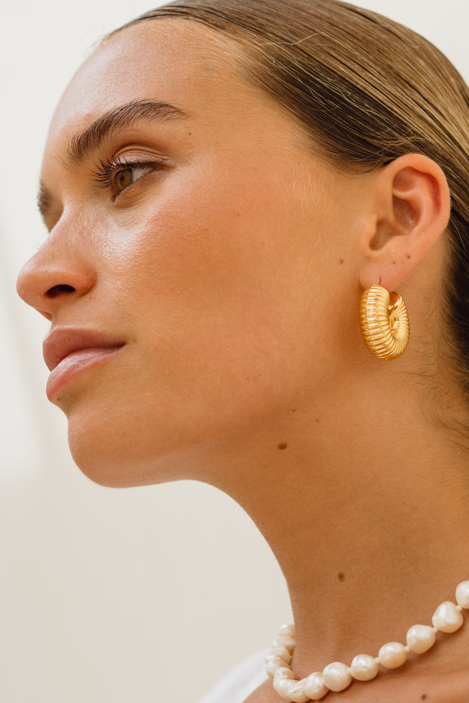 STELLAR is surfer-slang for something truly extraordinary — just like this series of luminous pearls and golden details. Effortless, with a hint of magic.- Crafted in brass with 18-karat gold plating and anti-tarnish e-coating