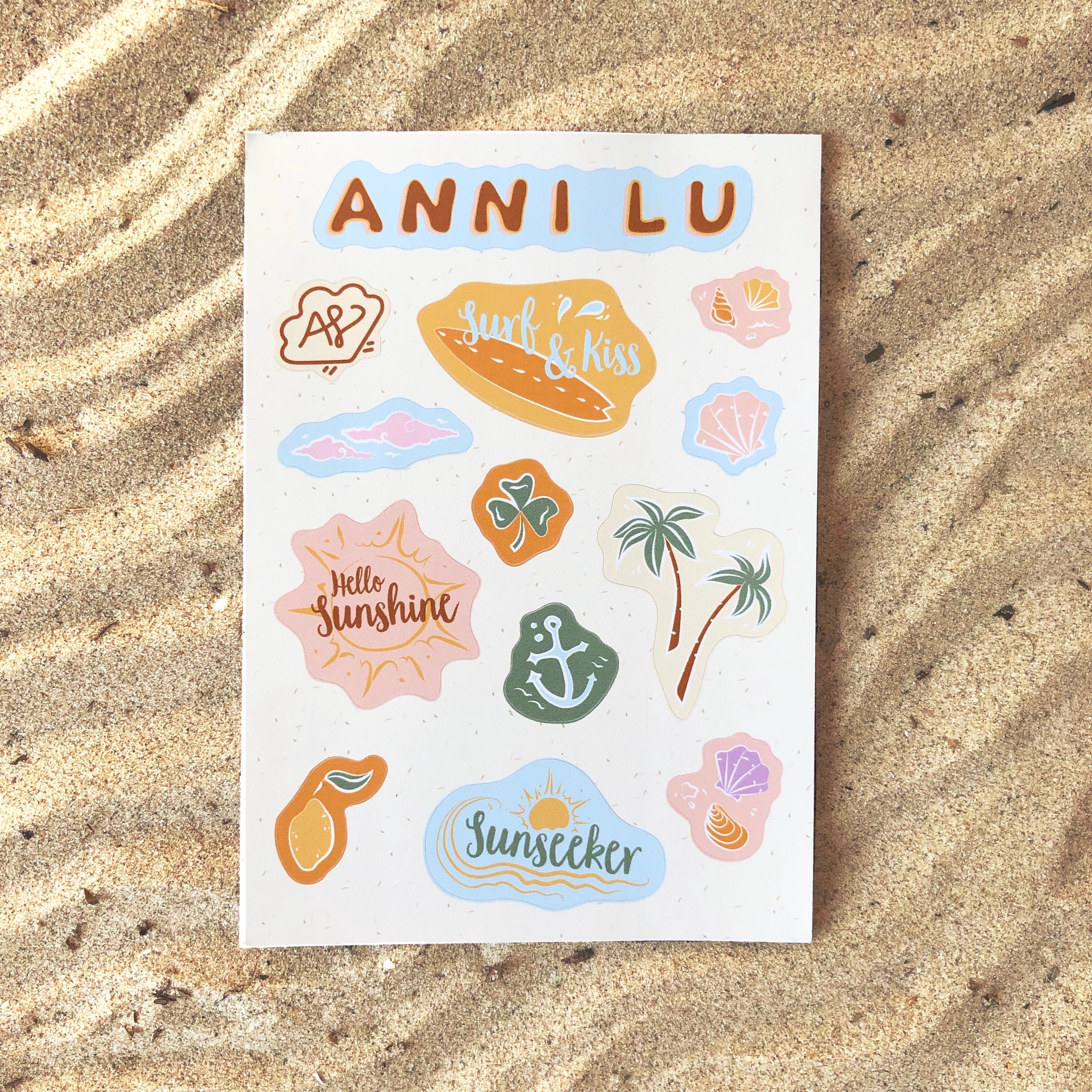 Let's stick together! Get your very own limited edition ANNI LU stickers now and get ready to pimp your surfboard, skateboard, vintage Porsche (or laptop). Instant coolness and cuteness guaranteed!