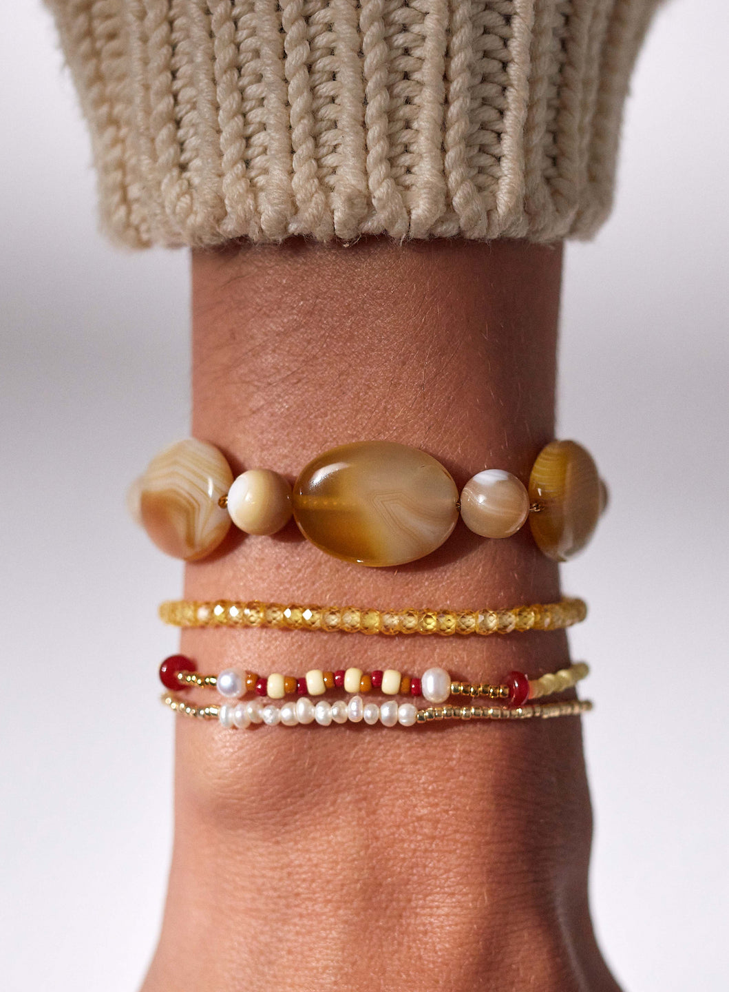 Meet the Calypso Bracelet. Dazzling mother-of-pearl beads and shimmering gold details bring this bracelet to life. Girly yet sophisticated, it’s an enchanting piece that dances on the skin with every movement.