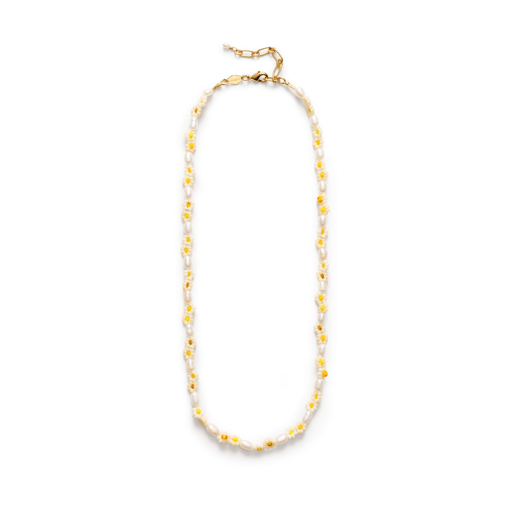 DAISY FLOWER is handcrafted using traditional Huichol techniques and reimagined in soft tones and freshwater pearls. The daisy stands for simplicity and new beginnings — a subtle way to carry grace and fresh energy wherever you go.- Crafted in brass with 18-karat gold plating and anti-tarnish e-coating