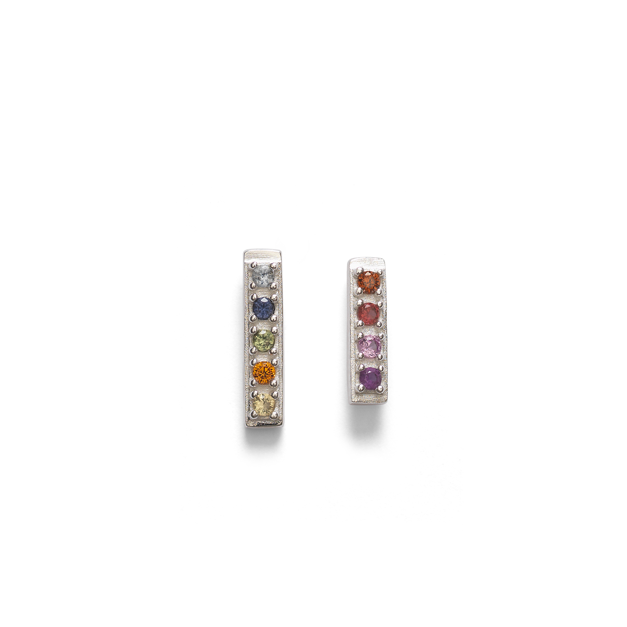 Add bright sparkle to your everyday looks with these Nine Dots ear studs. The nine dots rainbow is accented in multi-colored or clear cubic zirconia stones that dazzle. Combine with other ear studs or wear them solo.