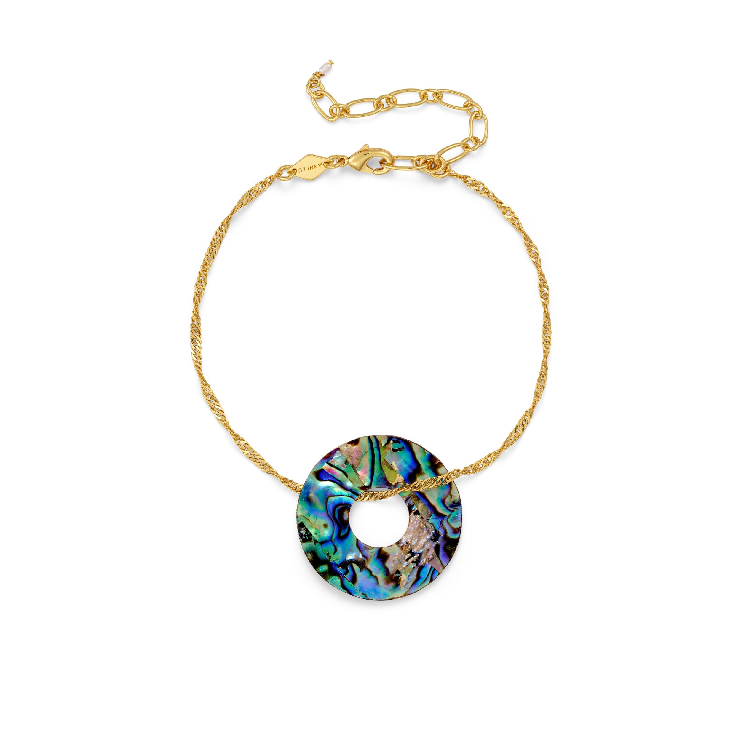 The ocean-inspired Oasis Anklet is a shimmering piece with a detachable pendant, making it versatile and perfect for playful styling.