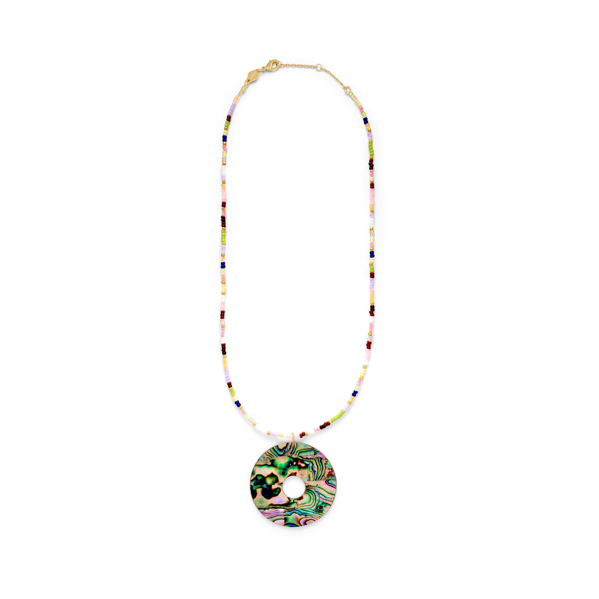 Introducing the newest member of our Eldorado family – the Oasis. Inspired by shimmering waves, this necklace features a detachable Abelone pendant with changing colors that capture the feeling of the sea and the movement of water. Like her sisters Hearty, Lucky, Berry, Dusty, Candy, and Sunny, the Oasis is perfect for mixing with both new and old favorites.
