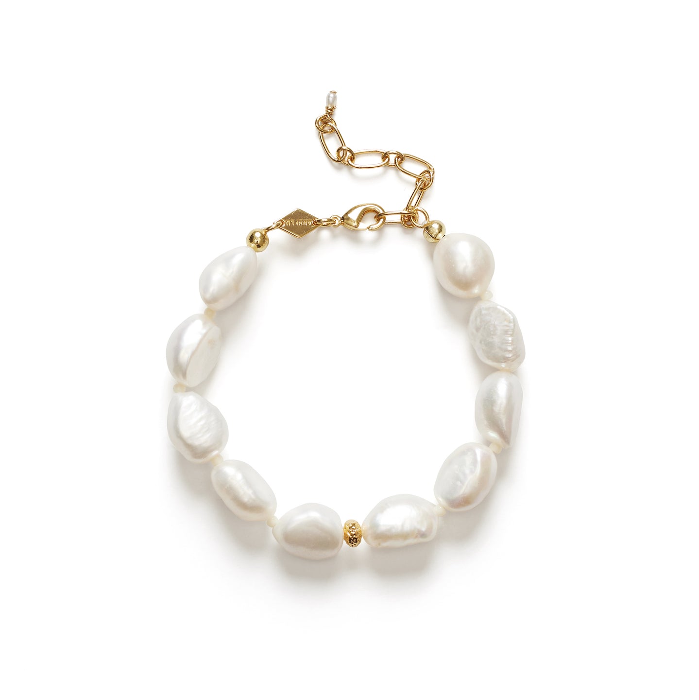 PEARLY BRACELET pairs golden beads with a single freshwater pearl — simple, elegant, and full of quiet charm. Wear it alone for a soft statement or layer it into your everyday stack.