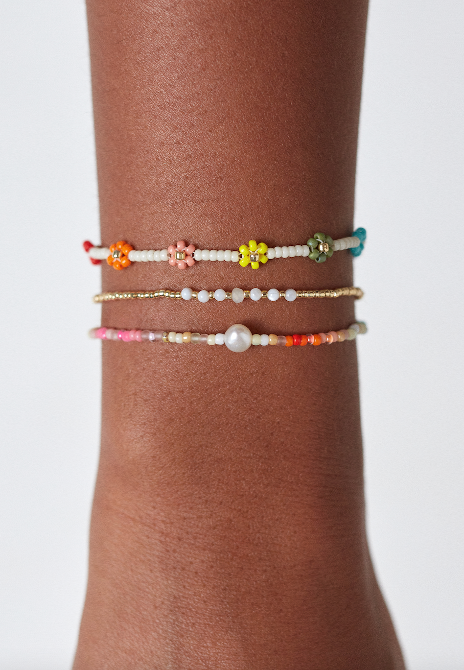 RAINBOW NOMAD is for the wanderer at heart — mixing tie-dye inspired colors with one-of-a-kind freshwater pearls. A delicate piece with a playful soul and a story to tell.