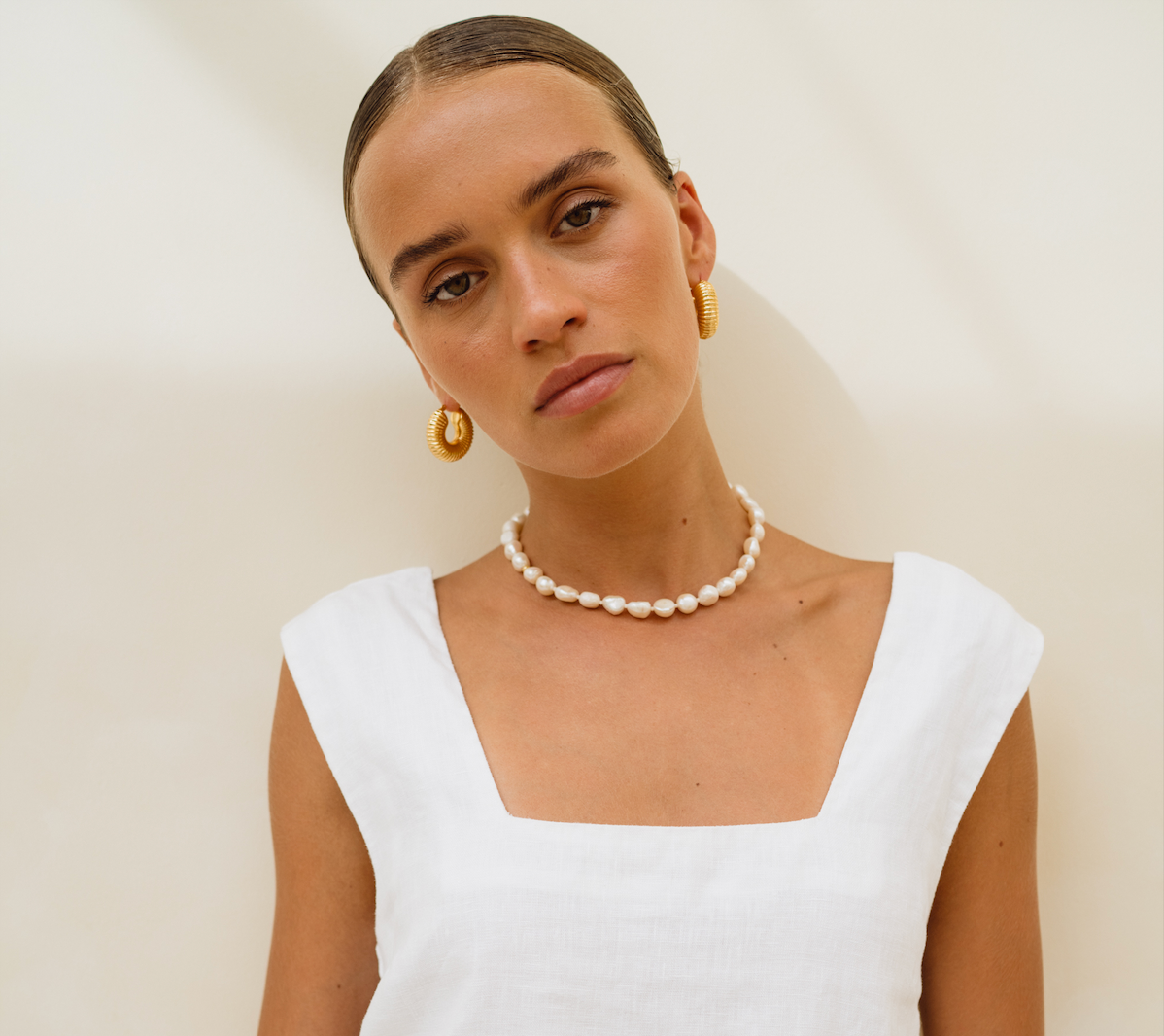 STELLAR is surfer-slang for something truly extraordinary — just like this series of luminous pearls and golden details. Effortless, with a hint of magic.- Crafted in brass with 18-karat gold plating and anti-tarnish e-coating