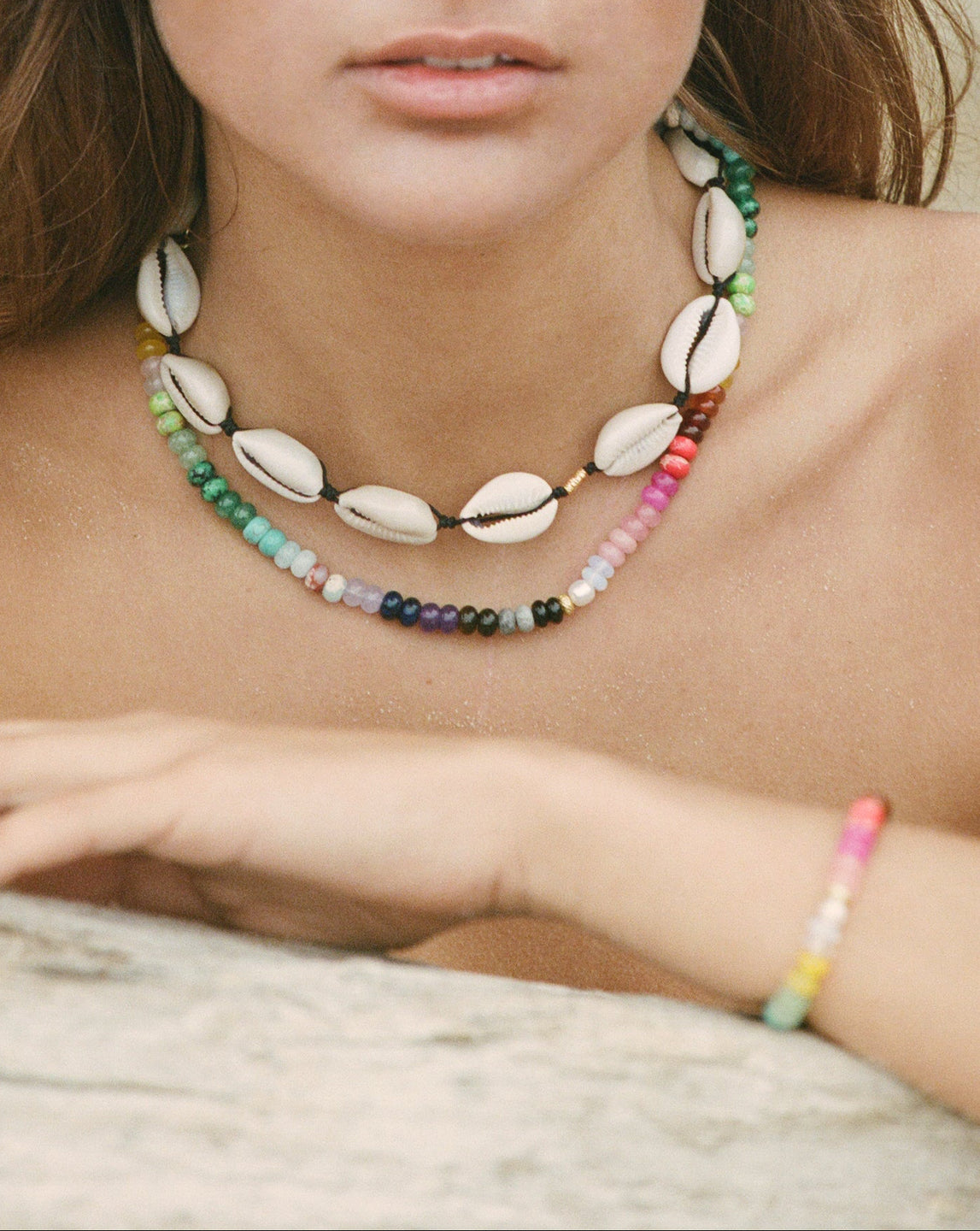 A completely new take on our bestselling Alaia series. Chunkier pearls, golden details, and a whole new color scheme will make the Sunny Alaia the perfect companion for your sun-kissed skin on the long days at the beach.