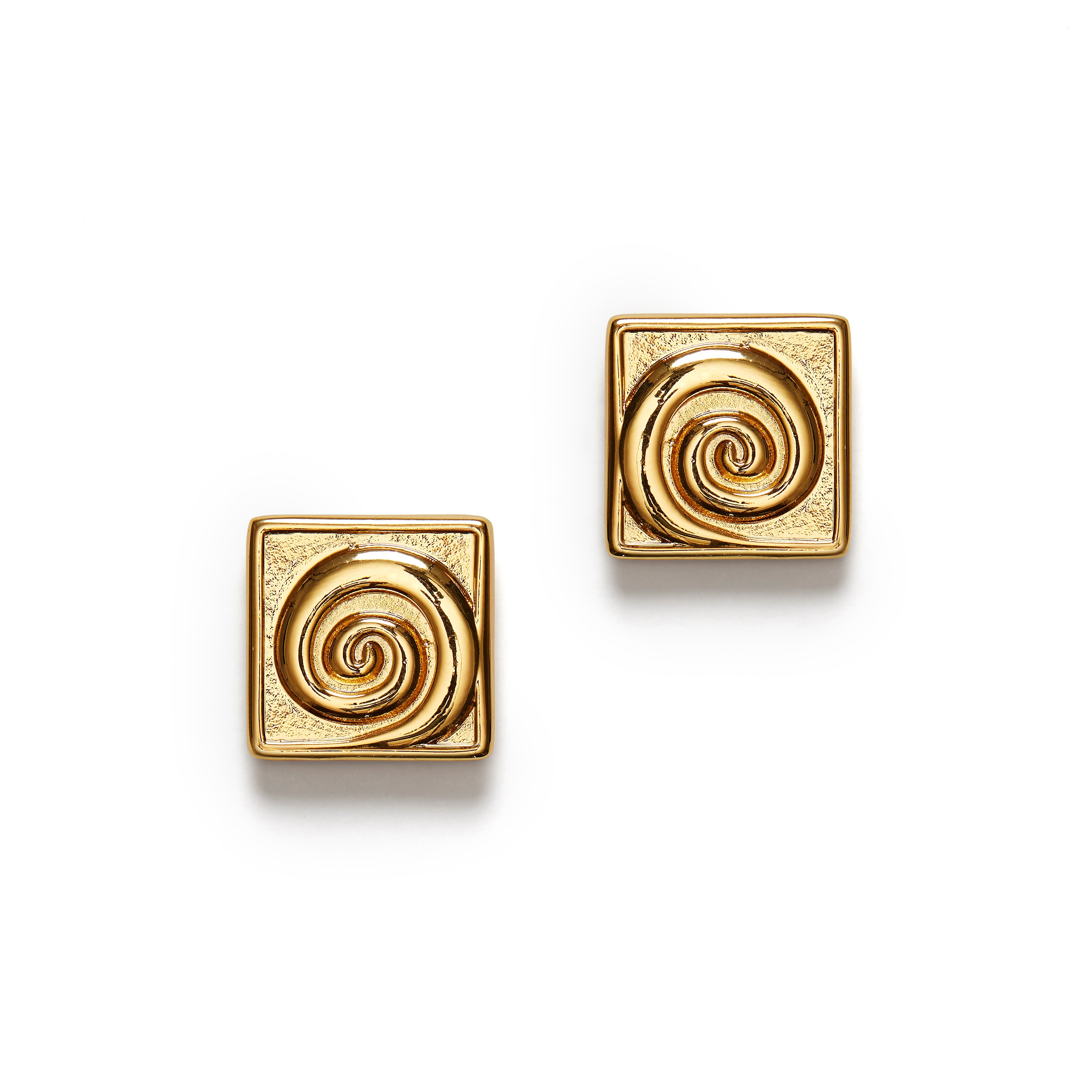 Say hi to the Swirly Square Earring in gold! These earrings are designed to stand out, capturing the essens of the 90's botton earring trend.