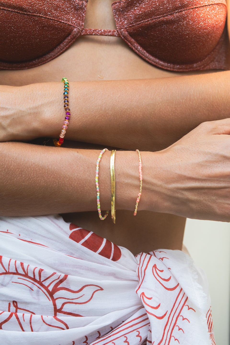 Discover our new take on the classic tennis bracelet where elegance meets playfulness. Drawing inspiration from rainbows, this sparkly bracelet will ensure you have fun jewelry for fun times. Get yours now before it’s too late!